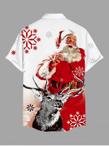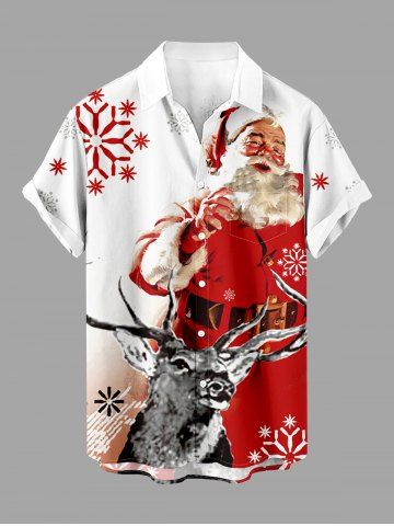 Plus Size Christmas Santa Claus Snowflake Elk Print Buttons Pocket Shirt For Men - White - M