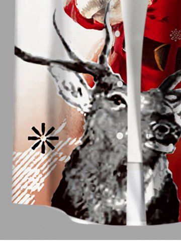 Plus Size Christmas Santa Claus Snowflake Elk Print Buttons Pocket Shirt For Men - White - 3xl