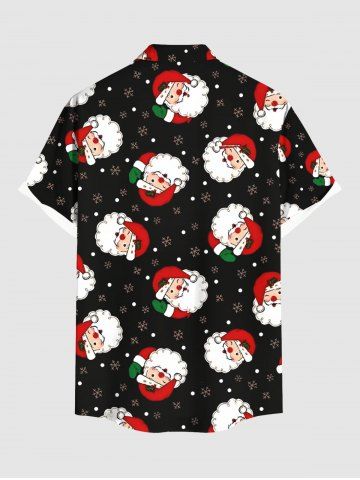 Plus Size Christmas Santa Claus Snowflake Print Buttons Pocket Shirt For Men - Black - M