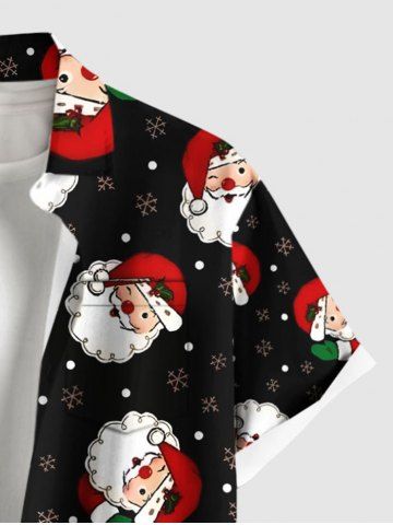 Plus Size Christmas Santa Claus Snowflake Print Buttons Pocket Shirt For Men - Black - 5xl