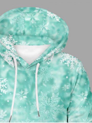 Plus Size Christmas Santa Claus Snowflake Snowman Print Drawstring Pockets Hoodie For Men - Green - M
