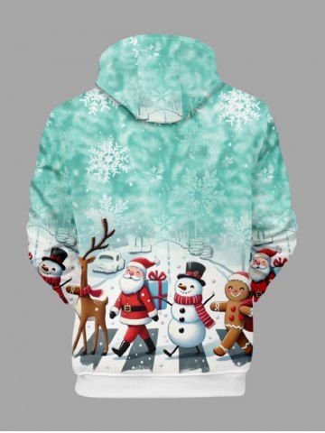 Plus Size Christmas Santa Claus Snowflake Snowman Print Drawstring Pockets Hoodie For Men - Green - 5xl