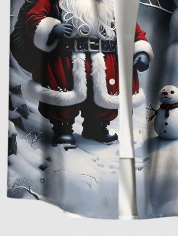 Plus Size Christmas Santa Claus Snowman Cloud Print Buttons Pocket Shirt For Men - Black - Xl