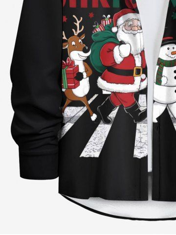 Plus Size Christmas Santa Claus Snowman Gingerbread Elk Letters Print Button Long Sleeves Shirt For Men - Black - 4xl