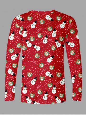 Plus Size Christmas Santa Claus Snowman Snowflake Lapel Collar Tie 3D Print T-shirt For Men - Red - 5xl