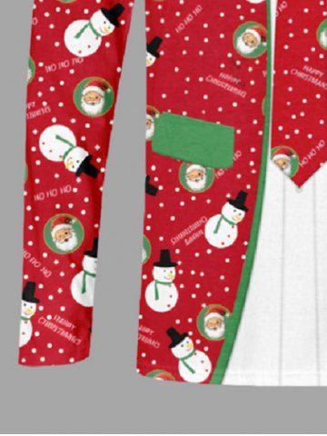 Plus Size Christmas Santa Claus Snowman Snowflake Lapel Collar Tie 3D Print T-shirt For Men - Red - 6xl