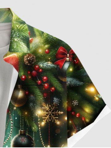 Plus Size Christmas Snowflake Ball Bowknot Holly Print Ombre Button Pocket Shirt For Men - Green - 4xl