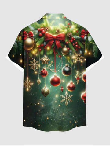 Plus Size Christmas Snowflake Ball Bowknot Holly Print Ombre Button Pocket Shirt For Men - Green - 5xl