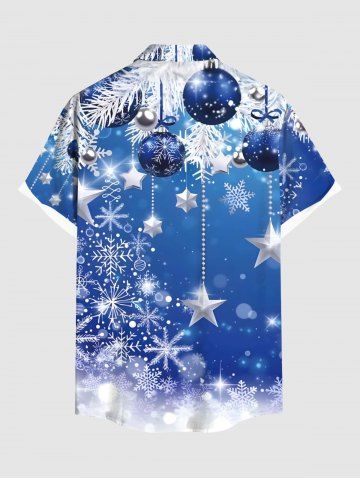 Plus Size Christmas Snowflake Ball Ombre Bubble Print Button Pocket Shirt For Men - Sky Blue - L
