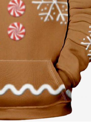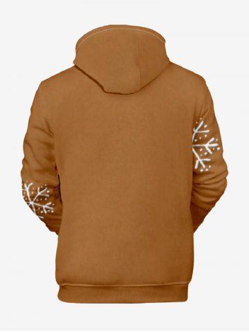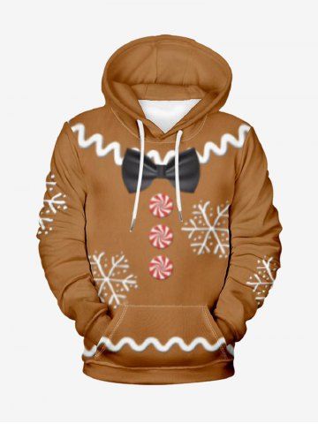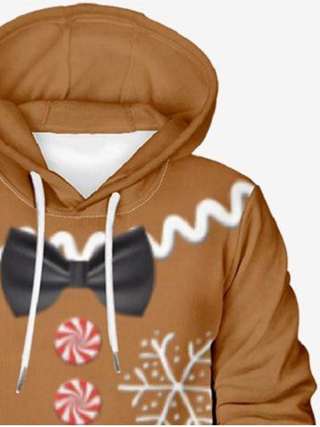 Plus Size Christmas Snowflake Candy Button Bowknot Print Pocket Drawstring Pullover Long Sleeves Hoodie For Men - Coffee - 3xl