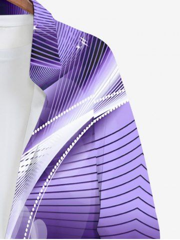 Plus Size Christmas Snowflake Curve Light Beam Ombre Print Buttons Pocket Long Sleeve Shirt For Men - Purple - Xl