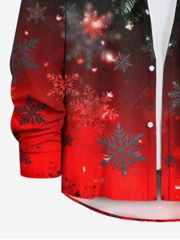 Plus Size Christmas Snowflake Dip Dye Ombre Print Button Long Sleeves Shirt For Men - Black - M