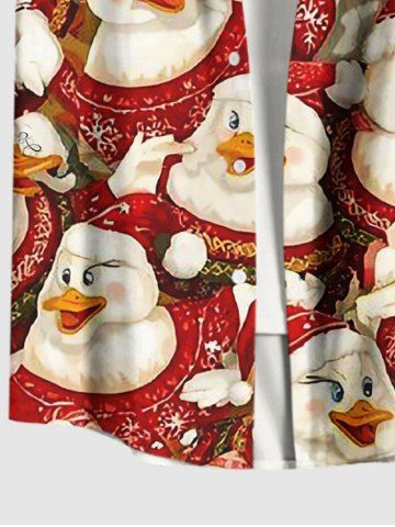 Plus Size Christmas Snowflake Duck Print Button Pocket Shirt For Men - Red - 2xl