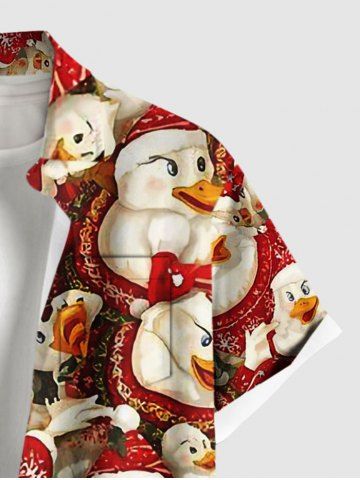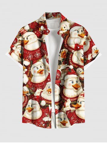 Plus Size Christmas Snowflake Duck Print Button Pocket Shirt For Men - Red - 5xl