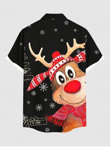 Plus Size Christmas Snowflake Elk Gift Print Button Pocket Shirt For Men - Black - Xl