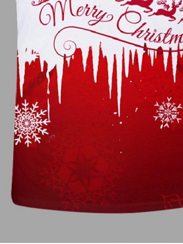 Plus Size Christmas Snowflake Elk Santa Claus Sled Colorblock Print T-shirt For Men - Red - L