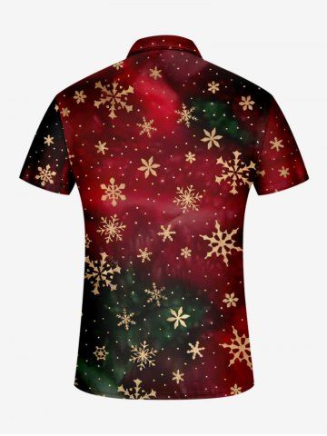 Plus Size Christmas Snowflake Floral Pin Dot Tie Dye Ombre Print Zipper Polo Shirt For Men - Deep Red - Xs