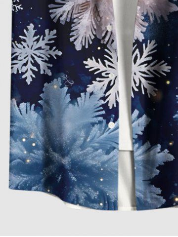Plus Size Christmas Snowflake Galaxy Print Buttons Pocket Shirt For Men - Navy Blue - M
