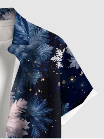 Plus Size Christmas Snowflake Galaxy Print Buttons Pocket Shirt For Men - Navy Blue - 2xl
