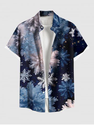 Plus Size Christmas Snowflake Galaxy Print Buttons Pocket Shirt For Men - Navy Blue - 5xl