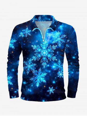 Plus Size Christmas Snowflake Galaxy Print Zippder Polo Shirt For Men - Sky Blue - S