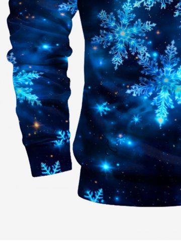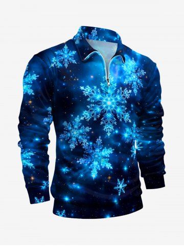 Plus Size Christmas Snowflake Galaxy Print Zippder Polo Shirt For Men - Sky Blue - 3xl