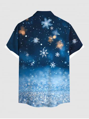 Plus Size Christmas Snowflake Galaxy Sparkling Sequin 3D Print Buttons Pocket Shirt For Men - Navy Blue - 4xl