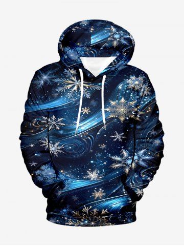 Men's Clothing > Plus Size Christmas Snowflake Galaxy Swirl Print Drawstring Pockets Hoodie For Men