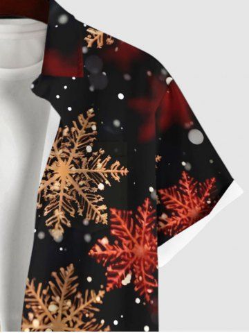 Plus Size Christmas Snowflake Glitter 3D Print Buttons Pocket Shirt For Men - Black - M