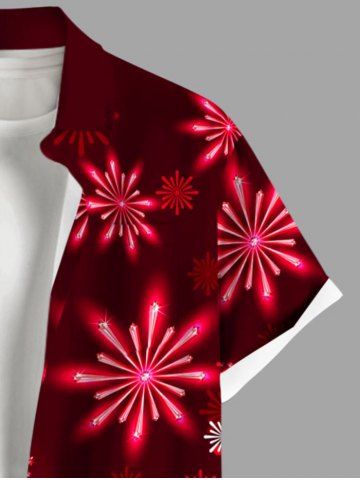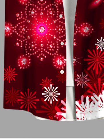 Plus Size Christmas Snowflake Glitter Belt 3D Print Buttons Pocket Shirt For Men - Red - L