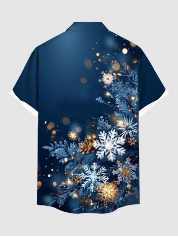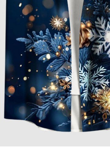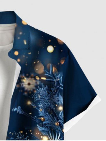 Plus Size Christmas Snowflake Leaf Glitter 3D Print Buttons Pocket Shirt For Men - Navy Blue - Xl