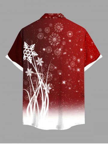 Plus Size Christmas Snowflake Ombre Colorblock Glitter 3D Print Buttons Pocket Shirt For Men - Red - S