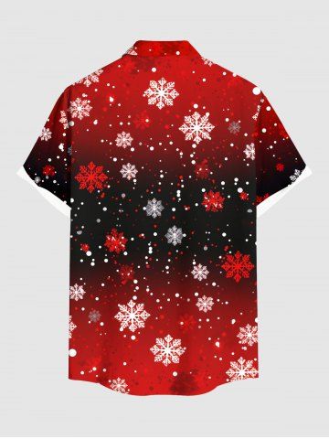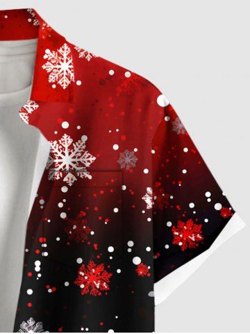 Plus Size Christmas Snowflake Ombre Colorblock Print Buttons Pocket Shirt For Men - Red - 4xl