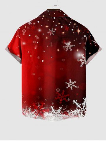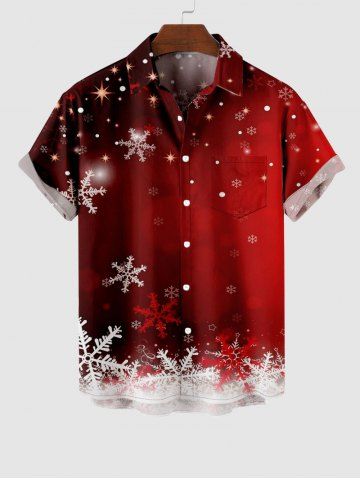 Plus Size Christmas Snowflake Ombre Galaxy Print Button Pocket Shirt For Men - Red - Xl