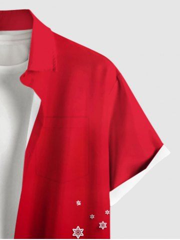 Plus Size Christmas Snowflake Ombre Glitter 3D Print Buttons Pocket Shirt For Men - Red - L