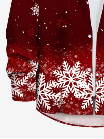 Plus Size Christmas Snowflake Ombre Print Buttons Pocket Shirt For Men - Red Wine - 2xl
