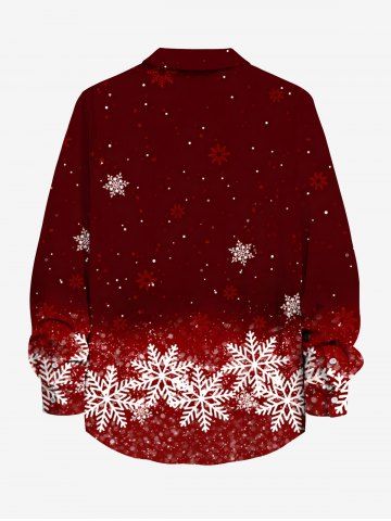 Plus Size Christmas Snowflake Ombre Print Buttons Pocket Shirt For Men - Red Wine - 3xl