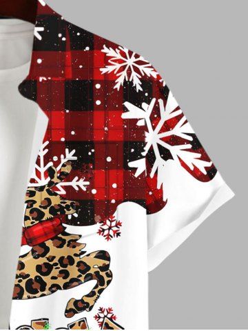 Plus Size Christmas Snowflake Plaid Leopard Elk Letters Print Button Pocket Shirt For Men - Red - 2xl