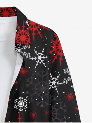 Plus Size Christmas Snowflake Print Buttons Pocket Long Sleeve Shirt For Men - Black - 8xl
