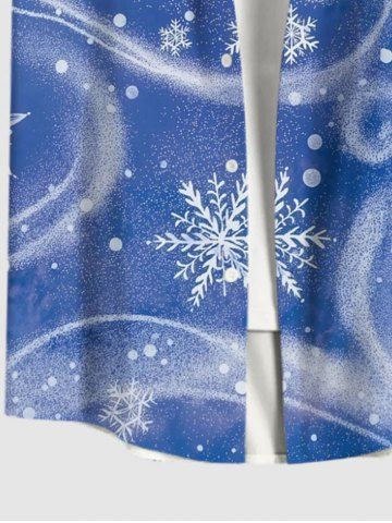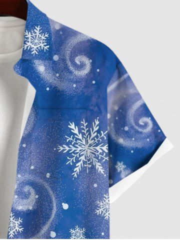 Plus Size Christmas Snowflake Print Buttons Pocket Shirt For Men - Blue - M
