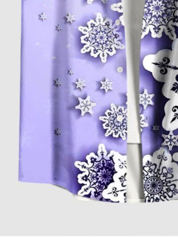 Plus Size Christmas Snowflake Print Buttons Pocket Shirt For Men - Purple - 2xl