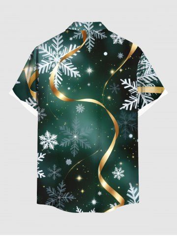 Plus Size Christmas Snowflake Ribbon Ombre Galaxy Print Button Pocket Shirt For Men - Deep Green - 2xl