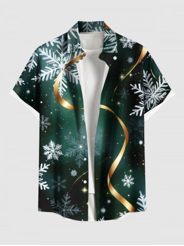 Plus Size Christmas Snowflake Ribbon Ombre Galaxy Print Button Pocket Shirt For Men - Deep Green - 3xl