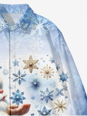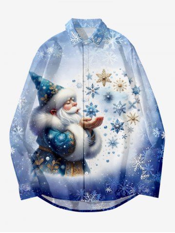 Plus Size Christmas Snowflake Santa Claus Print Ombre Button Long Sleeves Shirt For Men - Blue - L