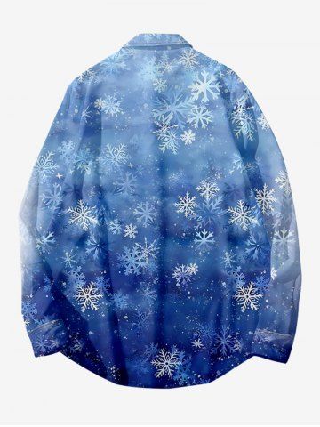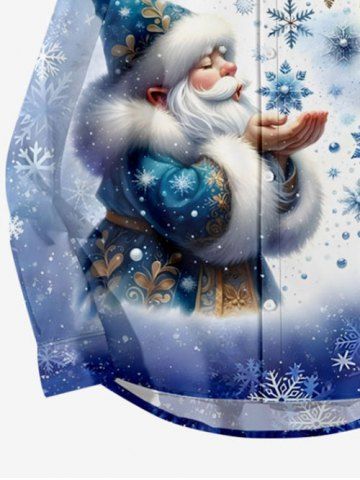 Plus Size Christmas Snowflake Santa Claus Print Ombre Button Long Sleeves Shirt For Men - Blue - 8xl