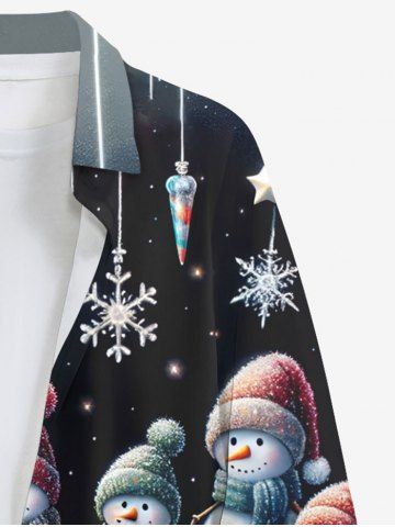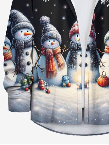 Plus Size Christmas Snowflake Snowman Glitter Galaxy Print Button Long Sleeves Shirt For Men - Black - M