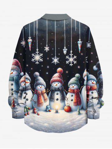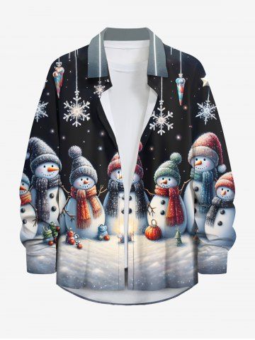 Plus Size Christmas Snowflake Snowman Glitter Galaxy Print Button Long Sleeves Shirt For Men - Black - 4xl