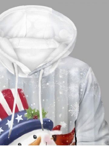 Plus Size Christmas Snowflake Snowman Patriotic American Flag Print Pullover Long Sleeves Hoodie For Men - White - Xl