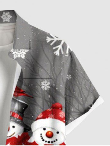 Plus Size Christmas Snowflake Snowman Rabbit Flower Print Button Pocket Shirt For Men - Gray - S