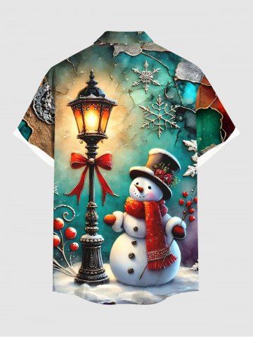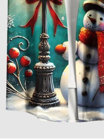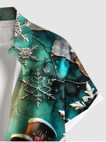 Plus Size Christmas Snowflake Snowman Street Lamp Print Ombre Button Pocket Shirt For Men - Green - L